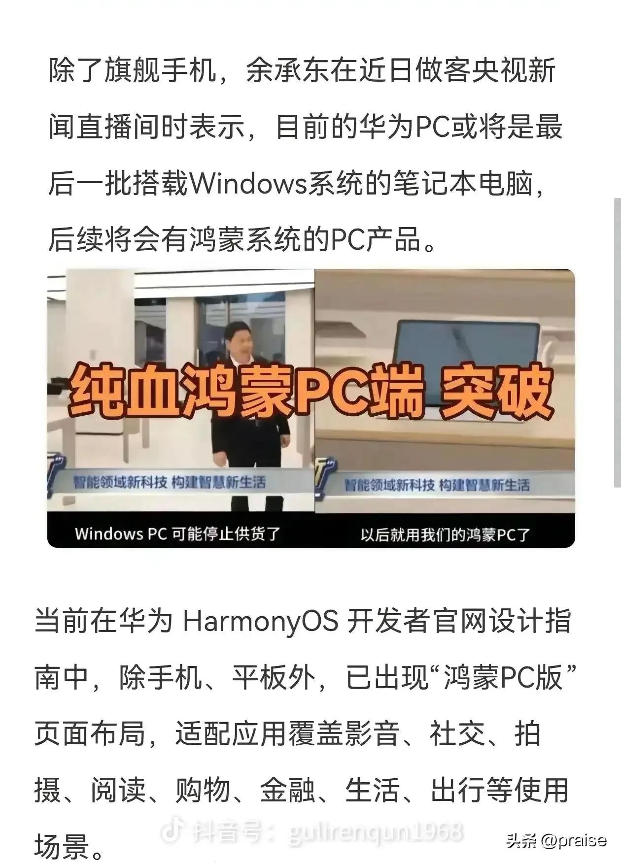 #### ** 头条2:华为“纯血鸿蒙”PC版官宣!挑战Windows生态**