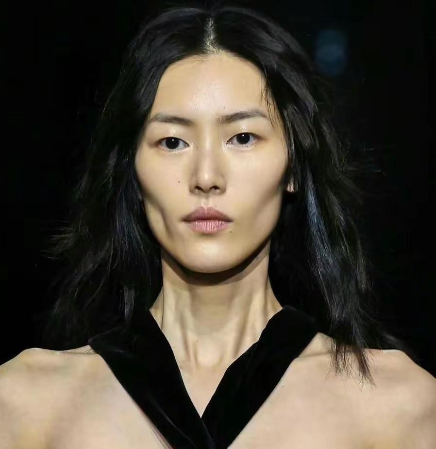 实际上,刘雯真的细看很美,有东方女性的冷峻与傲骨,但是上身黑布带交叉,为她的美实际是减分的。