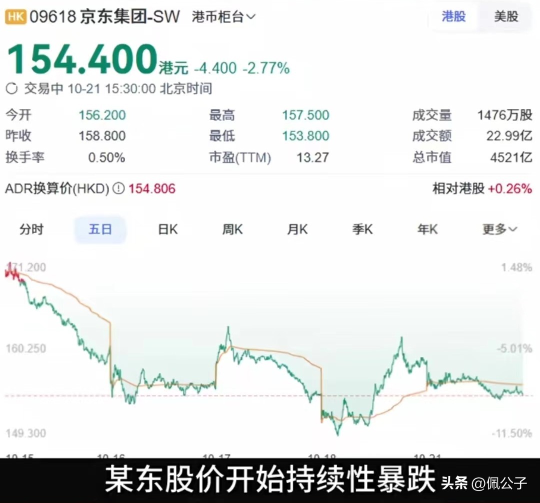 此外,京东的股价也开始持续性暴跌。
