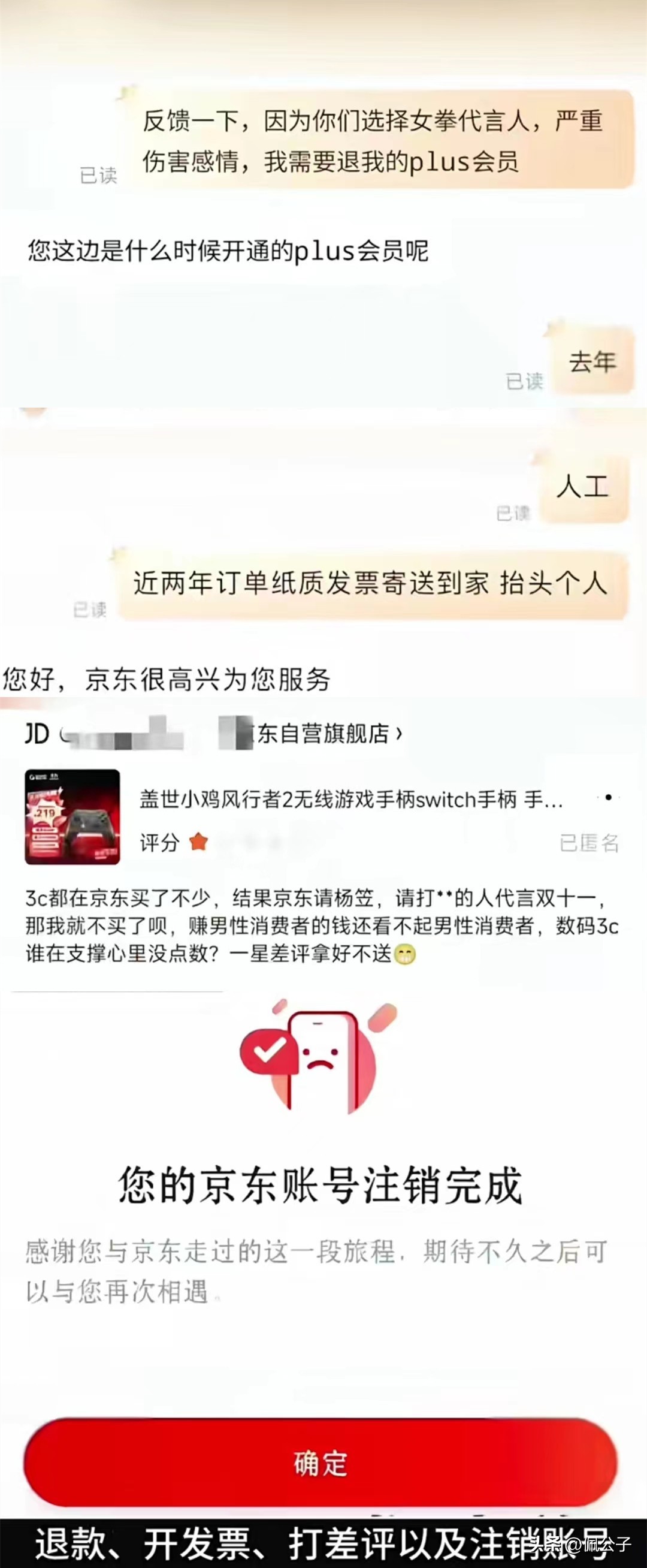 大批京东PLUS会员开始要求京东客服退款、开发票,甚至打差评以及注销账号表达自己的不满。