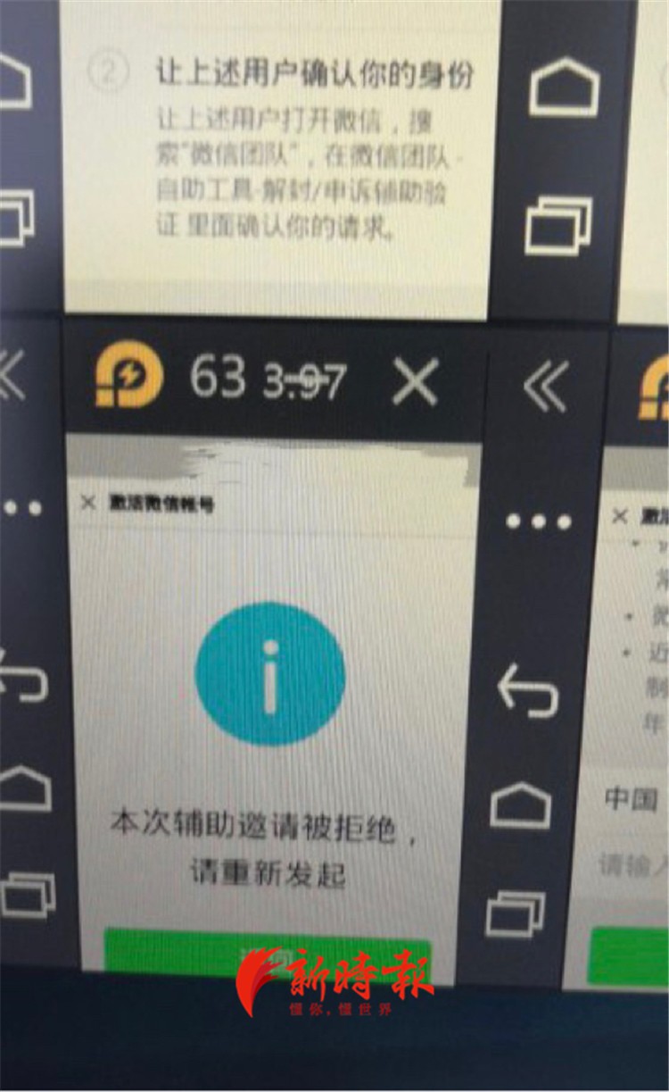 考虑到存在风险记者并未点击“确定键”完成最后的解封步骤,出乎意料的是,不到半分钟“放单人”就发来一张截图,上面显示“本次辅助邀请被拒绝”。此人似乎对记者未完成解封感到恼火,质问道“还要不要赚钱,如果想赚钱我重新发起,你抓紧点确定。”