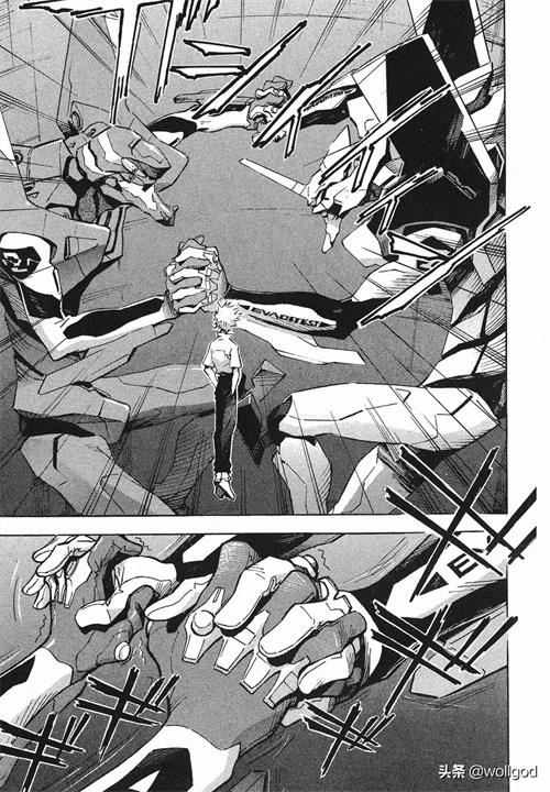 看到渚薰后,初号机一把抓住了他。为了避免出现“第三次冲击”,真嗣也必须阻止他。