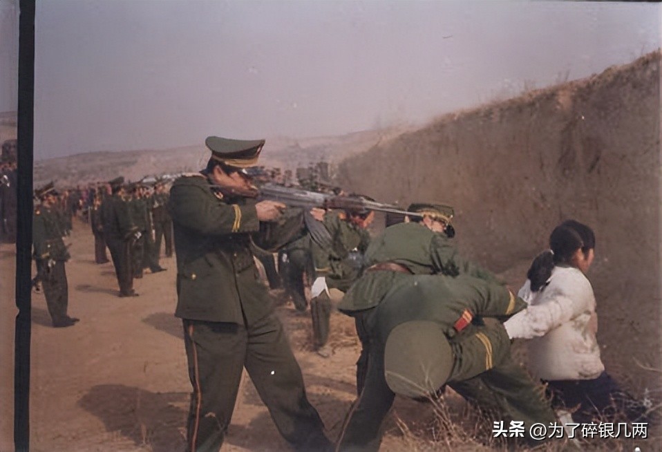 这个年轻的女孩是一个饭毒贩,被抓到以后判处了死刑,看起来年龄并不大,应该也就20多岁左右,结果就这样结束了她的一生,一个武警和一个女警将她押到刑场执行死刑。