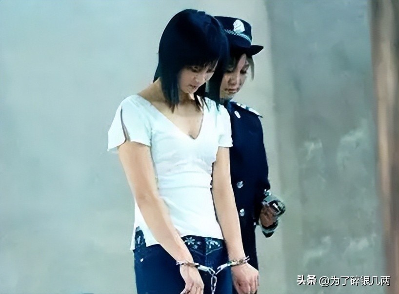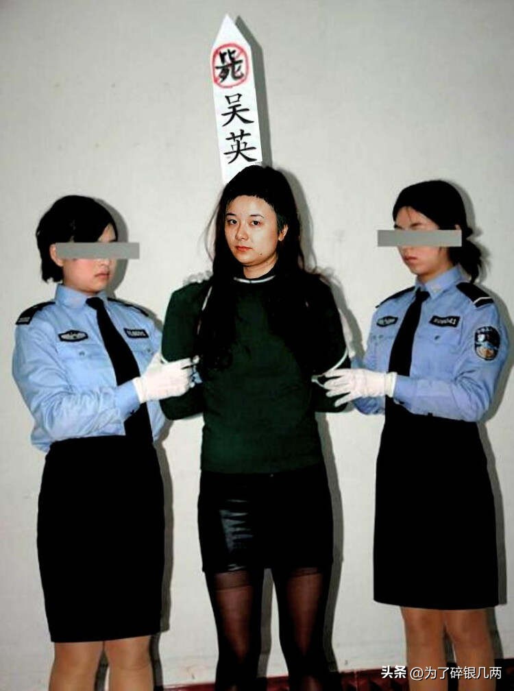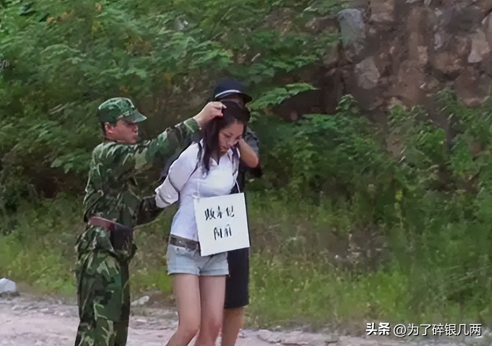 看起来很漂亮的一个女人,但是怎么也想不到居然是一个杀人犯,穿着一身职业装,然后被两个女警押到刑场,背后的牌子上面还写着杀人犯。