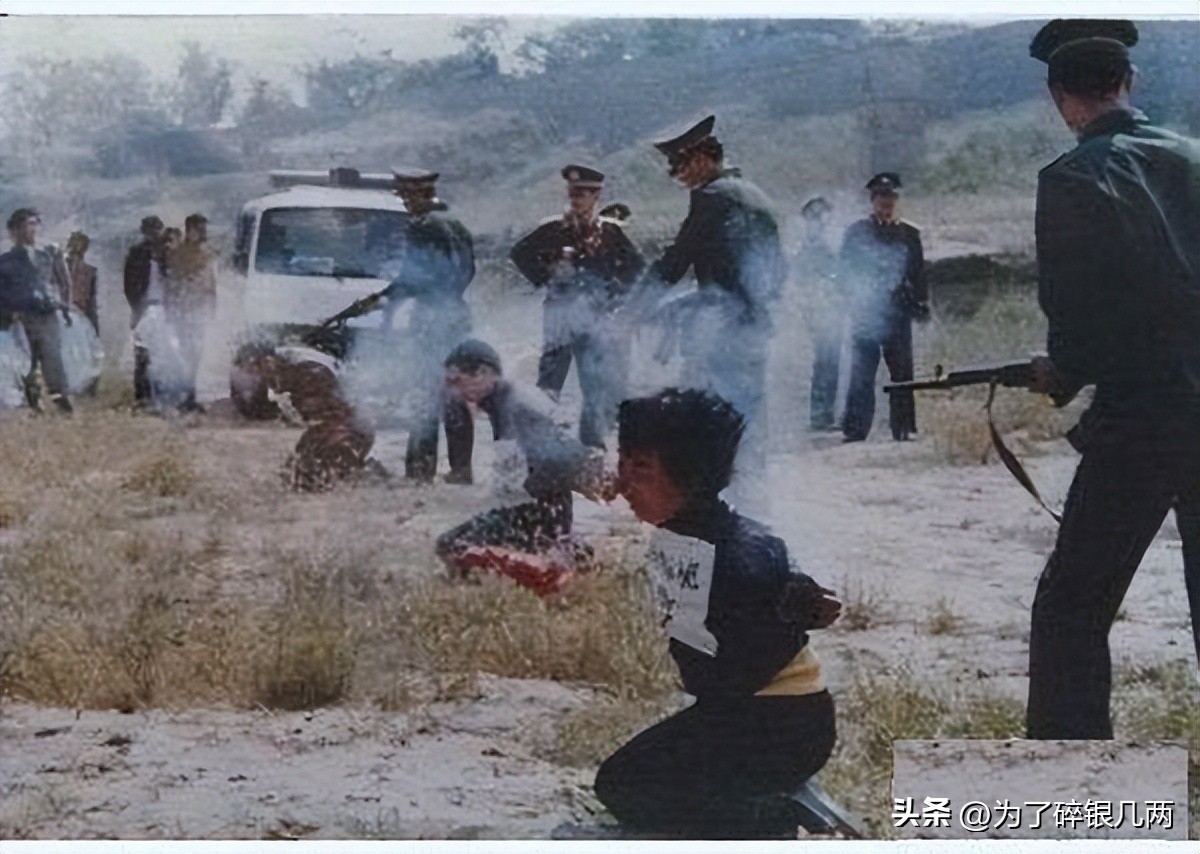 枪毙现场,摄影师刚好拍到了枪毙的瞬间,可以看到枪支冒出的浓烟,以及犯人脑袋上喷出的鲜血,当时还是对准脑袋进行枪毙。