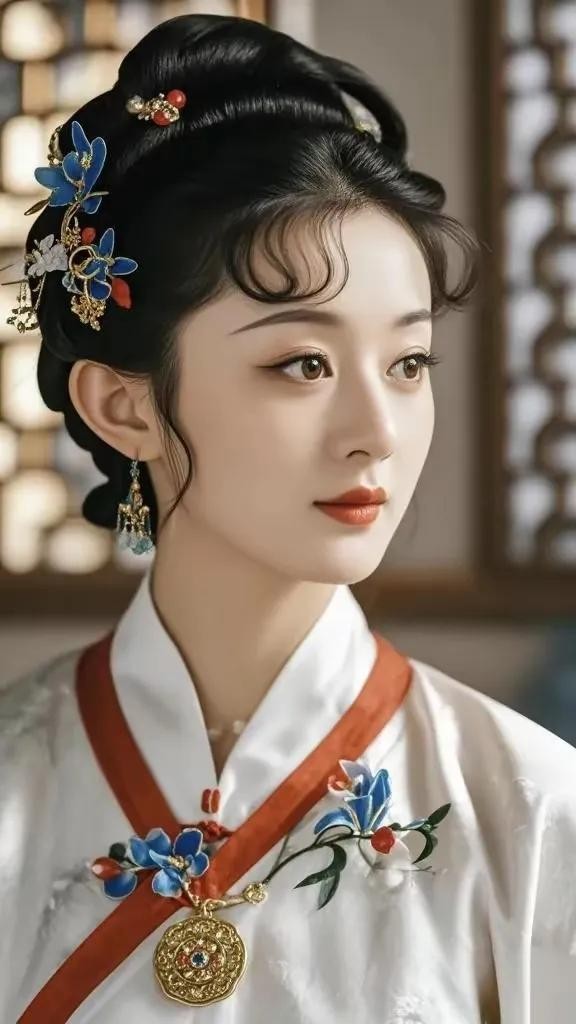 ,赵丽颖身着华丽的古装,唇不点而红,眉不画而翠,完美诠释了薛宝钗这一古典美人的独特气质。