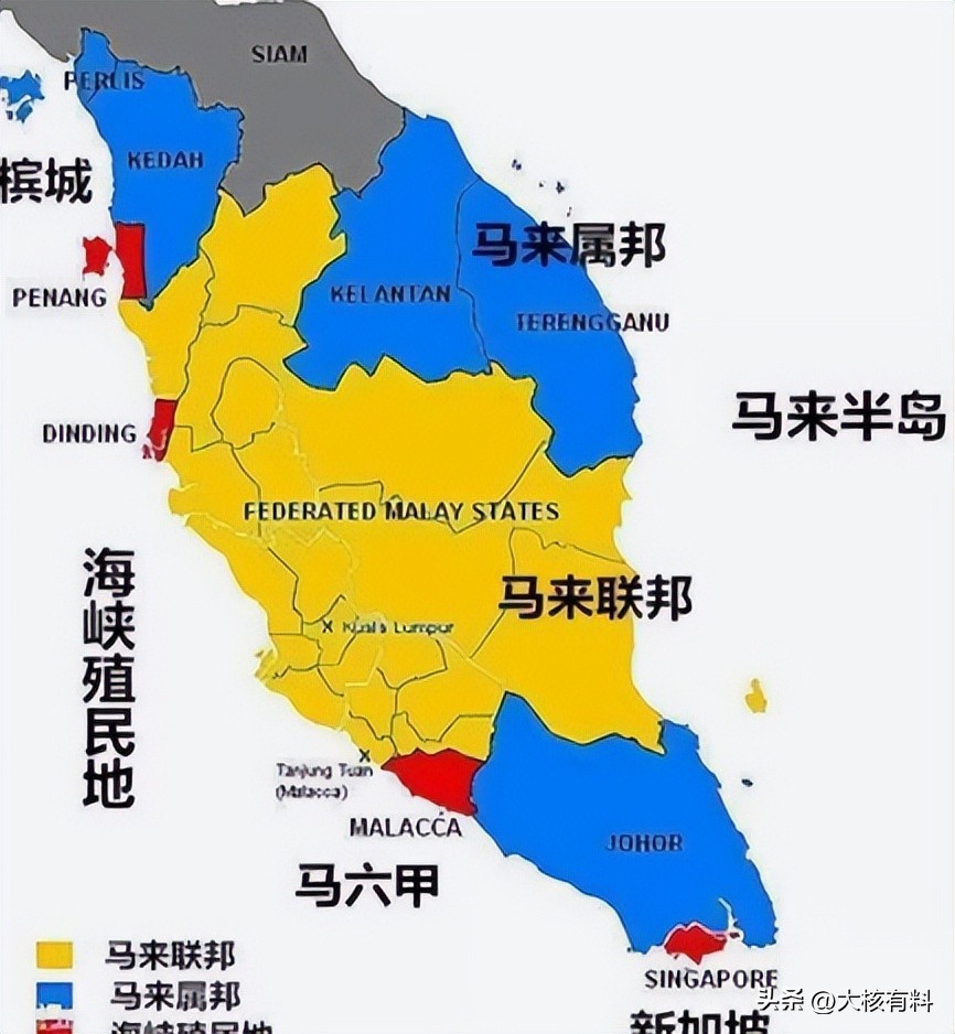 当时马来半岛主要分为三个组成部分,一个是英国的殖民地,一个是马来的联合邦,还有一个是马来的其他邦。