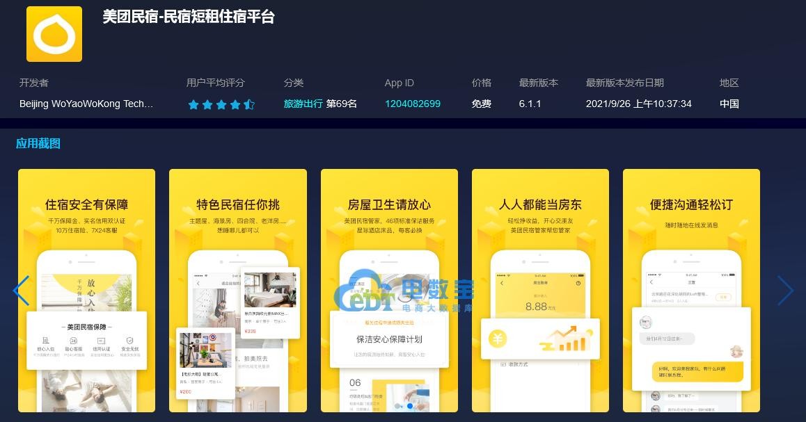 4)美团民宿累计下载量2982万(美团APP分流),行业排名16名,评分5.0;