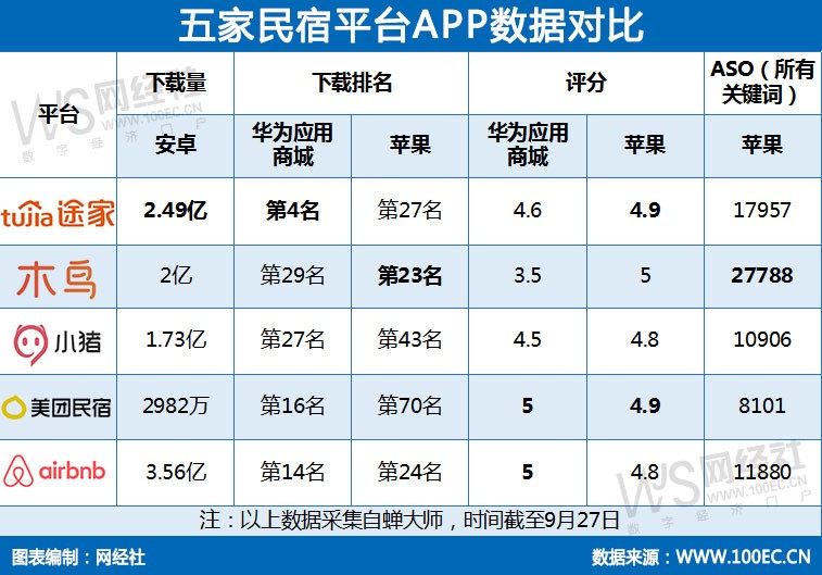 2、APP数据:爱彼迎用户最多 美团民宿口碑最好