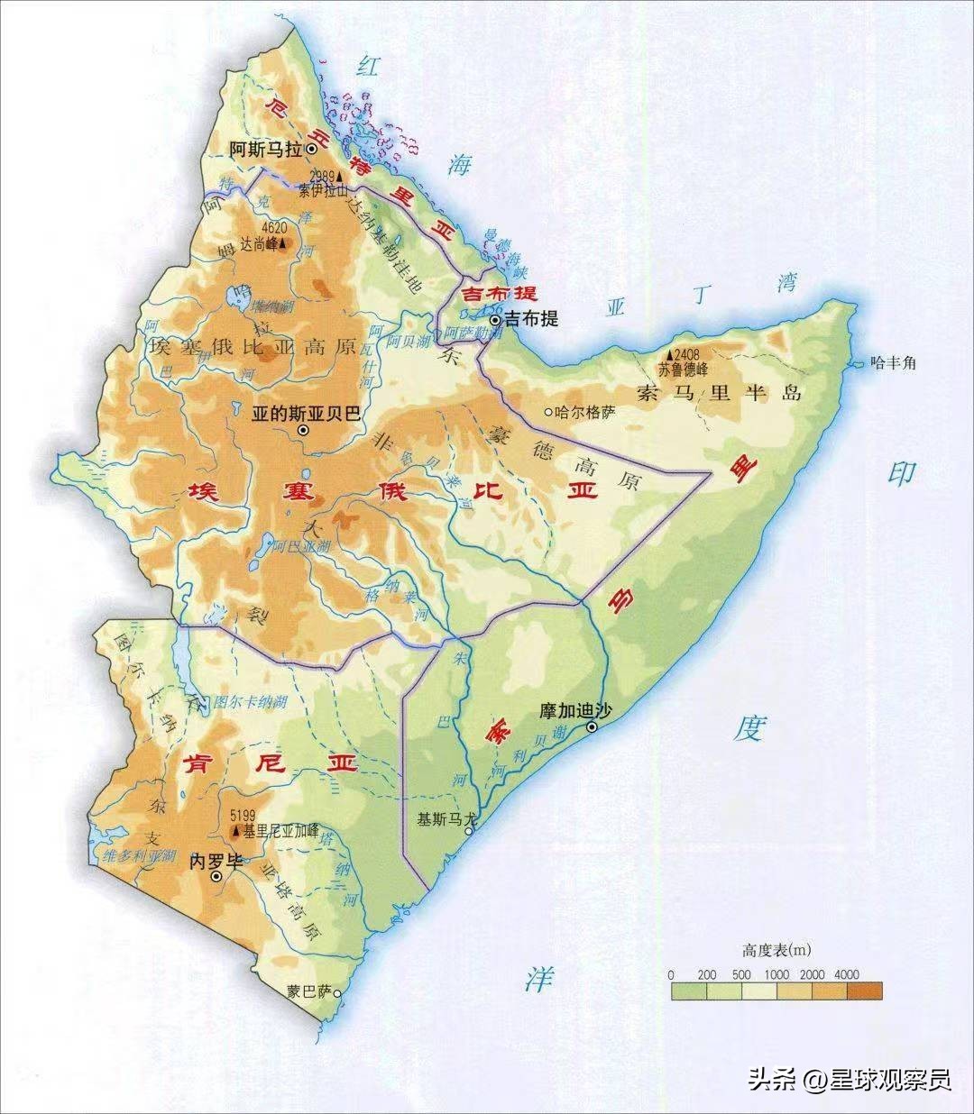 吉布提及周边国家地形图
