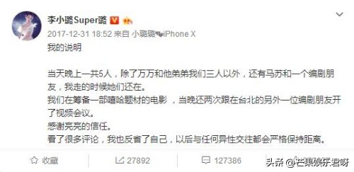 而夜宿门事件的男主pgone也发文表示他和李小璐之间是清白的,