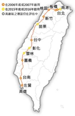 ▲台湾高铁以台北为起点,经板桥、桃园、新竹、台中、嘉义、台南至左营,共八个车站。