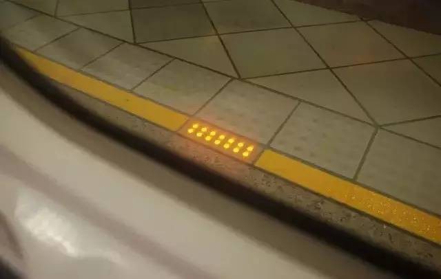 ▲站台上的安全线上有LED,临近开车或列车进站时会闪。