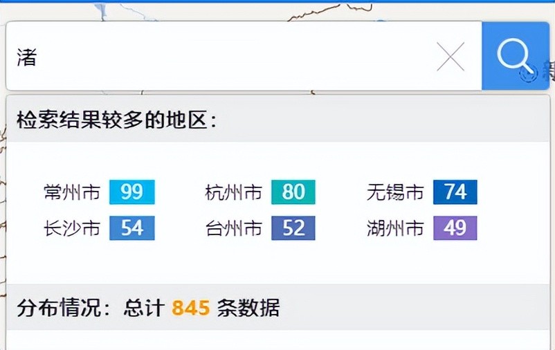 从中国·国家地名信息库中查询可以看到,目前全国包含“渚”的地名共845条。总体来看,长江中下游太湖流域是渚地名的聚集区,这也与地域自然环境特征相匹配。
