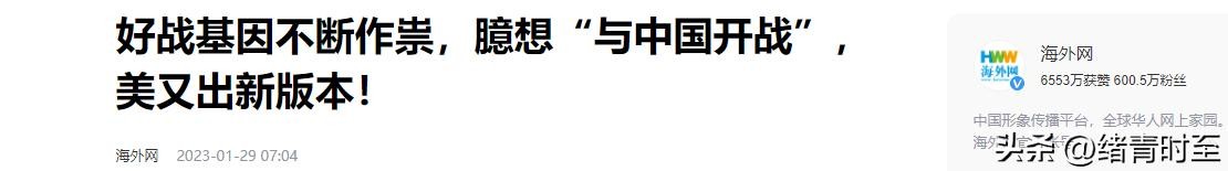 信息来源:海外网 2023-1-29 《好战基因不断作祟,臆想“与中国开战”,美又出新版本!》