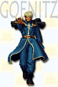 在KOF98破关后的全家福照片中出现,当时坊间还一度传出可以使用他的传闻,但事后证实只是传闻...不过这里左左觉得有些奇怪...明明KOF98为大蛇篇集大成之作,但在剧情上非常重要的高尼茨仅在背景出现,最后全家福出来跑龙套...?主要的大蛇...?更是连出现影子都没有....