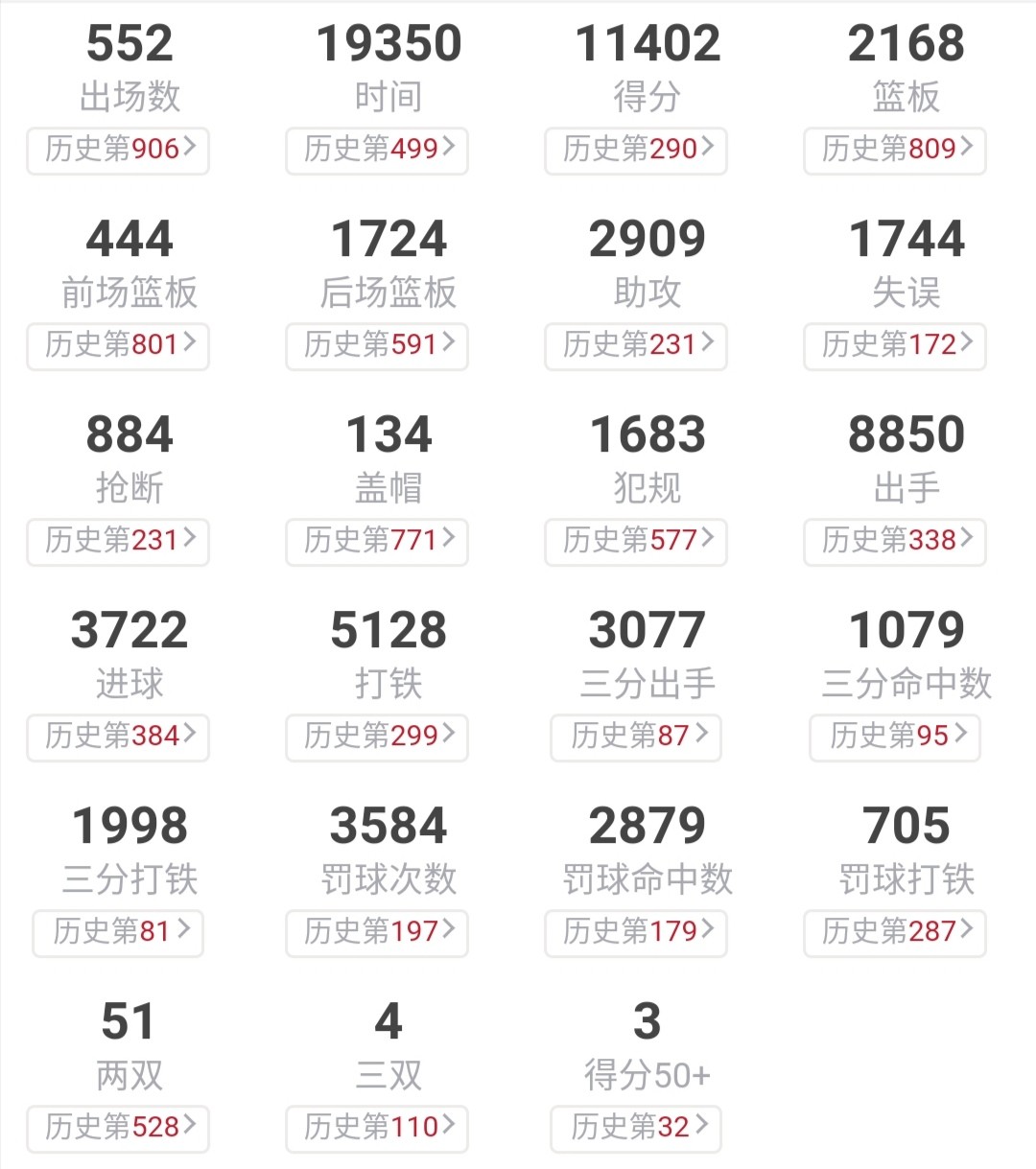 阿里纳斯生涯高阶数据一览
