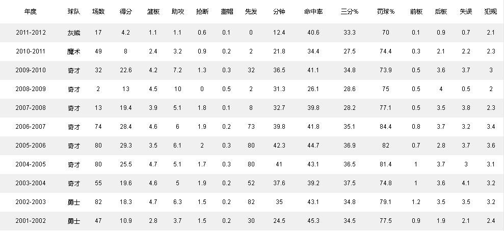 阿里纳斯生涯数据一览