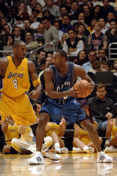 来到奇才后,阿里纳斯只花了两个赛季就进入了全明星,成了大家所熟知的0号特工。那时候,这个193公分、壮硕的0号颠覆了人们对于一号位的认知:他既能杀到篮下,扛着对方内线取分,又能在9米开外百步穿杨。而到了04-05赛季,阿里纳斯打出了场均25.5分4.7篮板5.1助攻1.7抢断的全面数据,也宣告这位次轮的状元秀,强势崛起!