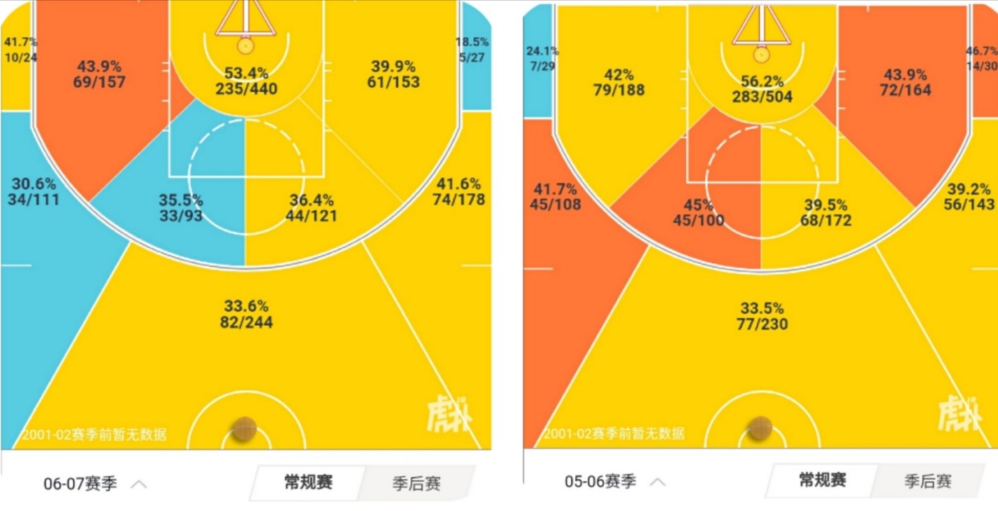 阿里纳斯05—06、06—07赛季的投篮热图
