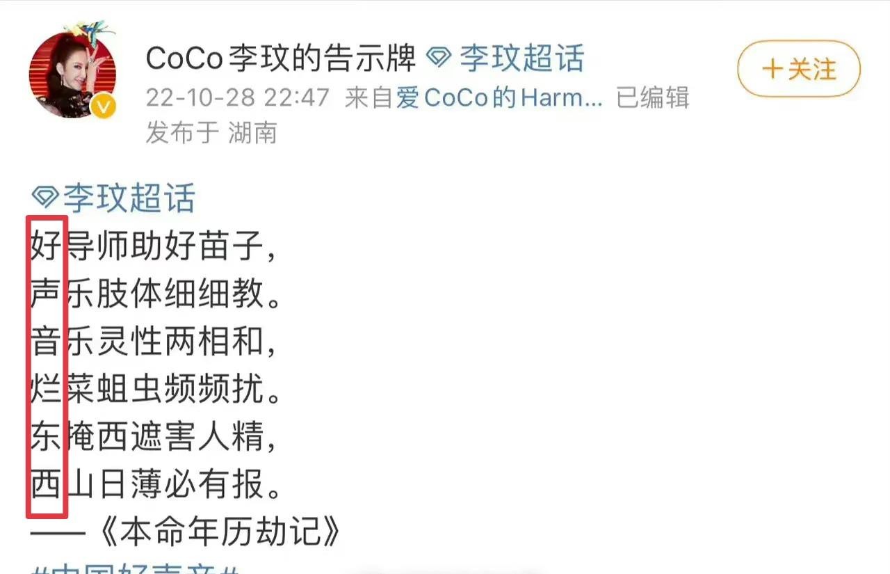 李玟曾经在自己的微博上发布了一条动态,这条动态是一首藏头诗,这首藏头诗就是来抨击好声音节目存在的一系列问题。