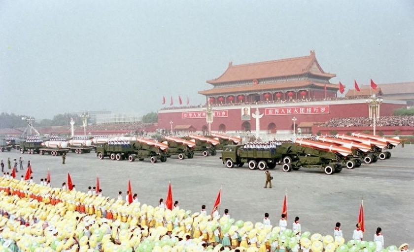 1984年10月1日的阅兵仪式上,最引人注目的莫过于压轴出场的战略导弹方队。当16辆巨大的导弹发射车缓缓驶过天安门时,现场爆发出雷鸣般的掌声。这是中国首次在国际社会面前展示自己的战略核力量。