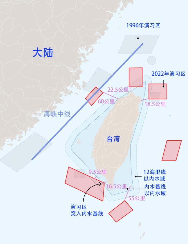 为了防止误判,解放军把演习区域限制在“台海中线”以西。