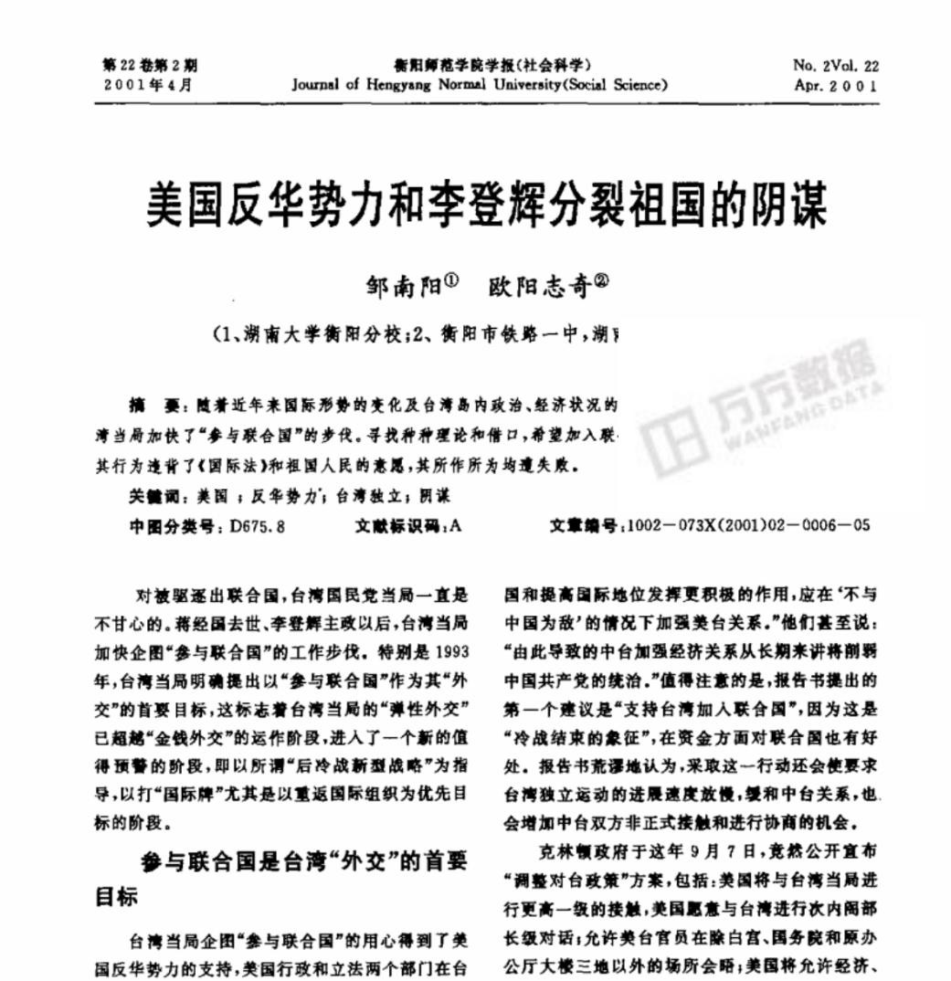 2.《美国反华势力和李登辉分裂祖国的阴谋》,邹南阳,欧阳志奇