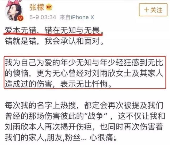 但谁都没想到,在一番互撕后,张檬居然发长文公开承认了自己的“插足”事实。