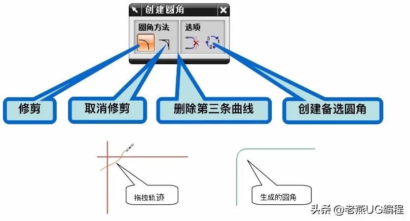 使用该命令可以在两条或三条曲线之间创建一个圆角。