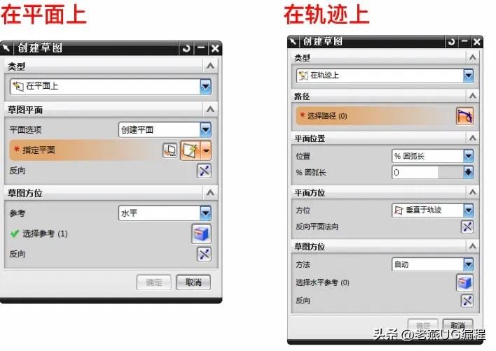 > 重新附着:可以更改草图的类型、附着平面等参数。【重新附着】和【创建草图】对话框十分相似,【重新附着】过程类似创建草图。