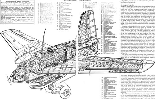 Me-163是世界上唯一参加过实战的火箭动力战斗机。Me-163可以说已不是个飞机,更像是火箭弹、导弹和探空火箭的鼻祖。 Me-163是在DFS-139型滑翔机的基础上改进得来,1940年6月3日,DFS-194试验机首飞。试飞之初,发现发动机的续航工作时间太短,而只得以Bf-110型机牵引起飞。1941年8月31日,换装发动机的Me-163首飞,速度达到了855千米/时,1941年10月2日第二架原型机更达到了约1004.5千米/时。各型Me-163共生产了364架,在战争中共击落了9架敌机,战绩并不理想。