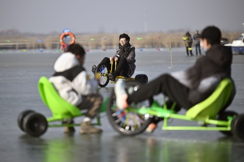 2025年1月1日,游客在体验冰上娱乐项目。新华社记者 王鹏 摄