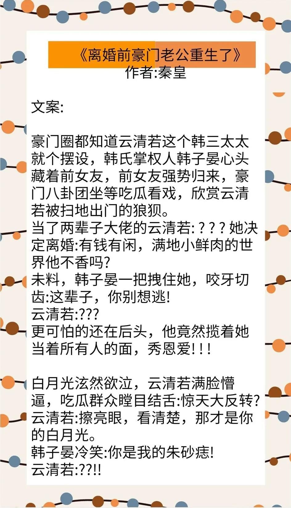 推荐3本男主重生文,《离婚前豪门老公重生了》