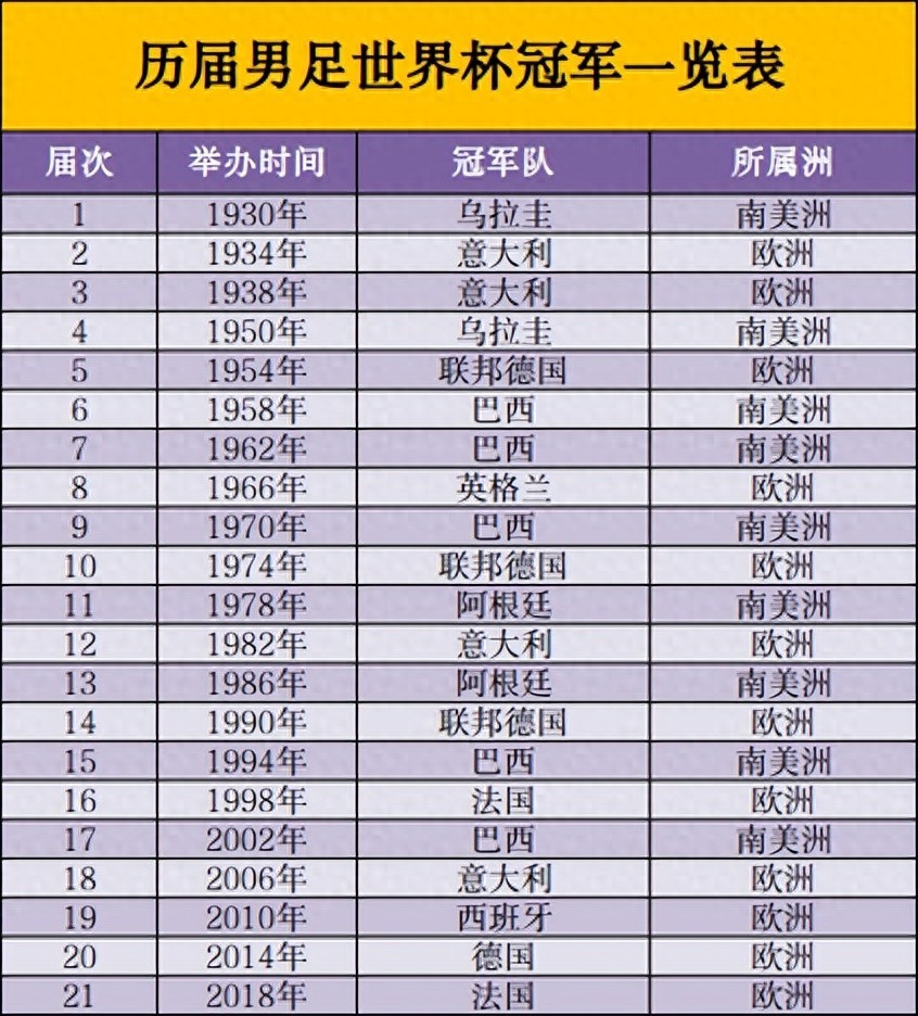 历届男足世界杯冠军回顾:21次冠军花落八家,南美球队稍逊