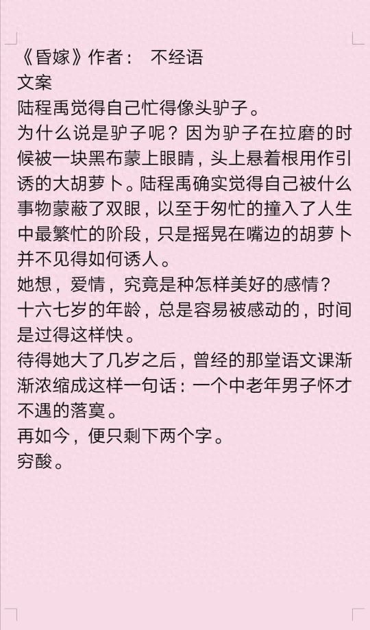 最后一遍推荐!昏嫁太好看了太好看了太好看了!陆程禹太行了!不经语文笔也太好了!太喜欢男主波澜不惊的搞冷幽默了哈哈哈哈哈哈哈哈哈哈 !