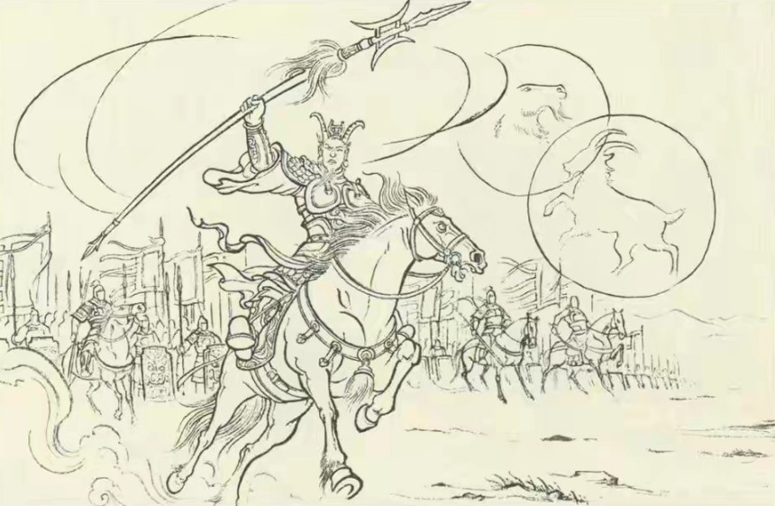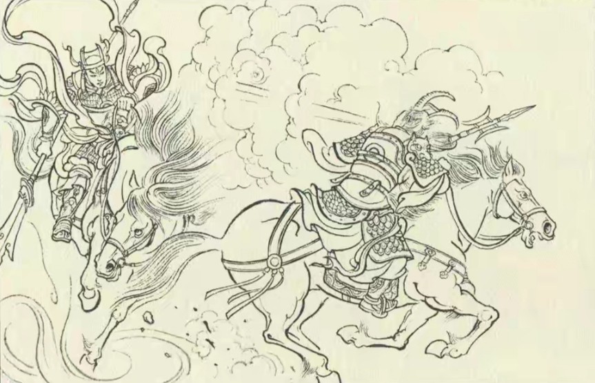 话说杨显一杆方天画戟舞动得可谓是神出鬼没,但杨戬的三尖两刃刀也是刀刀直取要害,二人大战好似龙争虎斗。且说杨显大战二十余回合后,渐渐落入了下风,知道自己不是杨戬的对手,便掩一戟后连忙撤退。见杨戬大步流星地赶来,杨显连忙从口中吐出一道白光,将杨戬连人带马定在原地。