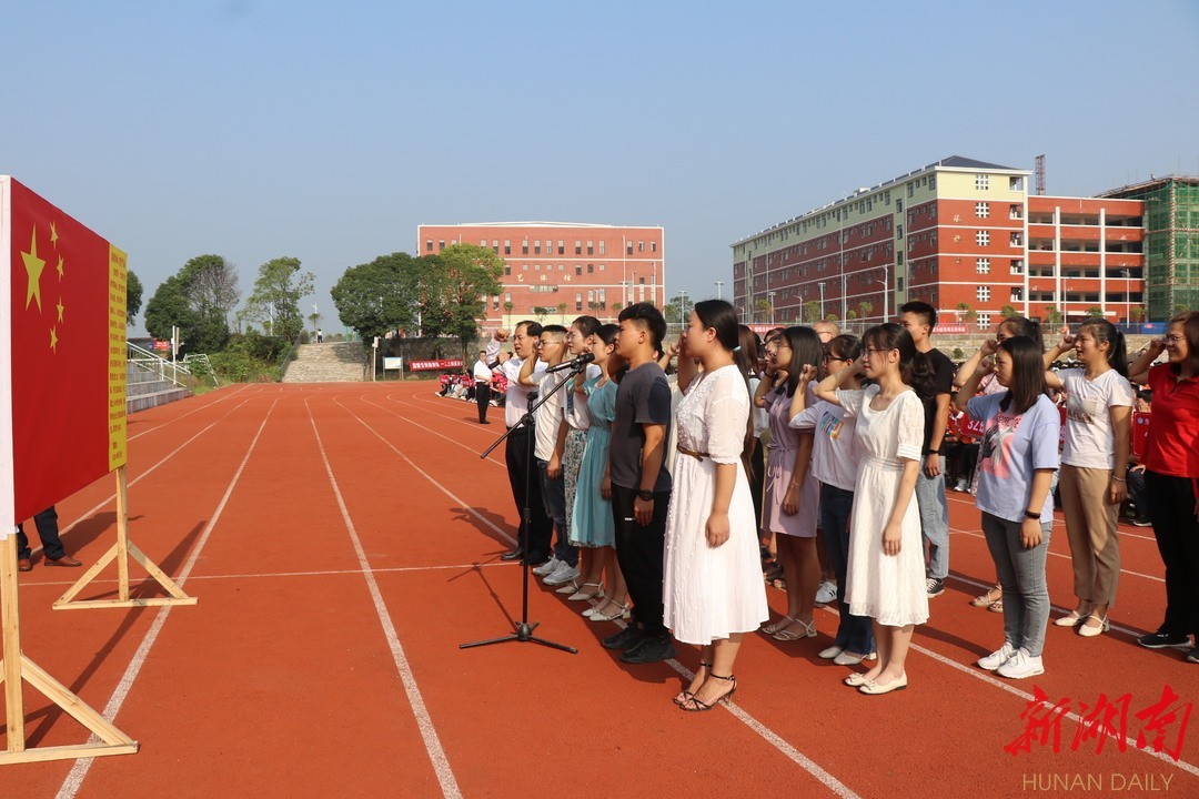 新湖南客户端9月10日讯(通讯员 申学峰 刘洁 黄明科)长空净碧,金风送爽,9月9日上午,隆回九中2021—2022学年度开学典礼暨第三十七个教师节表彰大会在南校区田径场举行。县教育局党委委员、副局长匡耀南,教学设备服务中心主任周同录和该校8100多名师生及部分学生家长参加了开学典礼。典礼由该校党总支书记范青友主持。