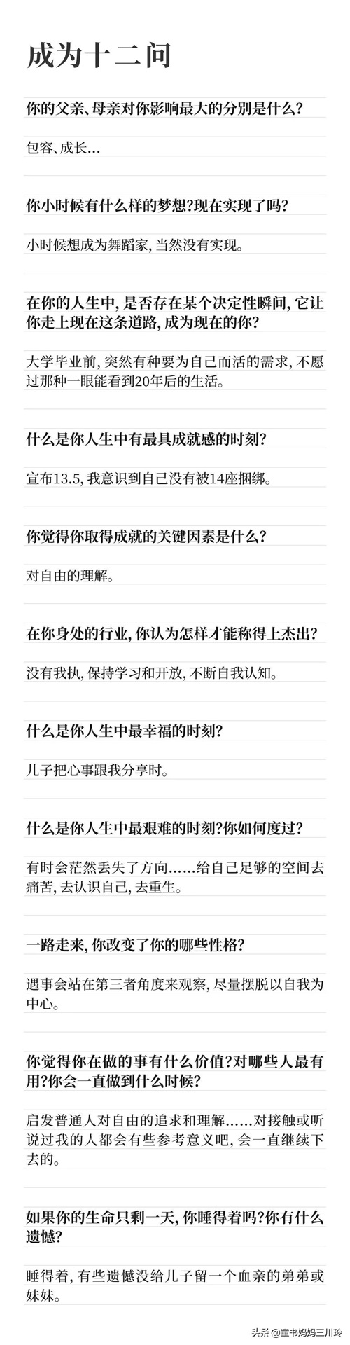 对于孩子,我从来没有要求他去挤精英学校,成为顶尖人物。我不认同虎妈的教育方式,那样会抹掉孩子很多天性。因为你给他设定了一个你心目中的目标,而不是他内心想要的。