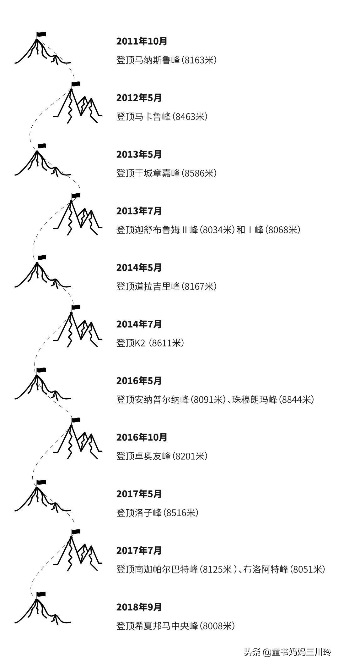 最初登山,我也没有一个远大的目标,只是在做自己喜欢的事,一步步往前走。后来登完K2那种比较难的山之后,我才想,是不是试试看登顶14座。