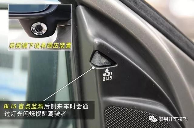 不少高配车型开始配备BLIS盲点监测系统,后视镜下设有感应装置,在后侧来车时通过A柱上的灯光闪烁来提醒驾驶者。