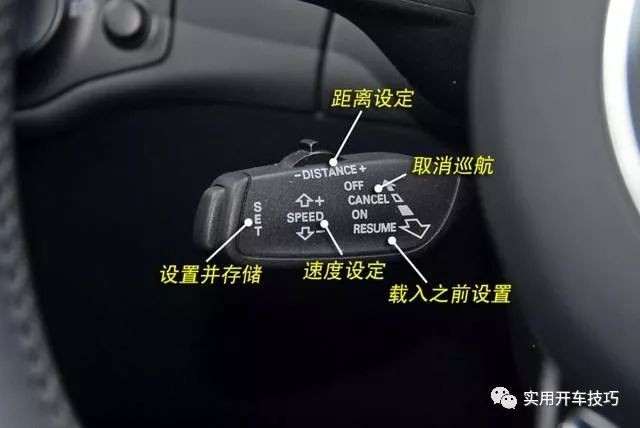 定速巡航,其他车型的控制按键设置在方向盘或别处,图标都是类似的,上图是以奥迪为例。