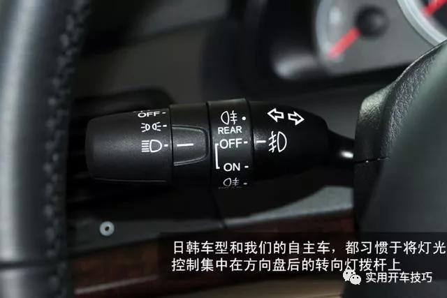 与德系美系不同,日韩车型和我们的自主车,都习惯于将灯光控制集中在方向盘后的转向灯拨杆上,但功能和标识都大同小异,没有多少区别。