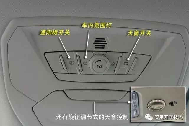 天窗控制主要有按键式和旋钮式两种,图标都较为简单。