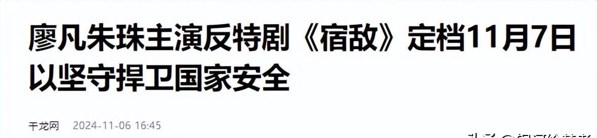 千龙网2024年11月6日关于“廖凡朱珠主演反特剧《宿敌》定档11月7日 以坚守捍卫国家安全”的报道