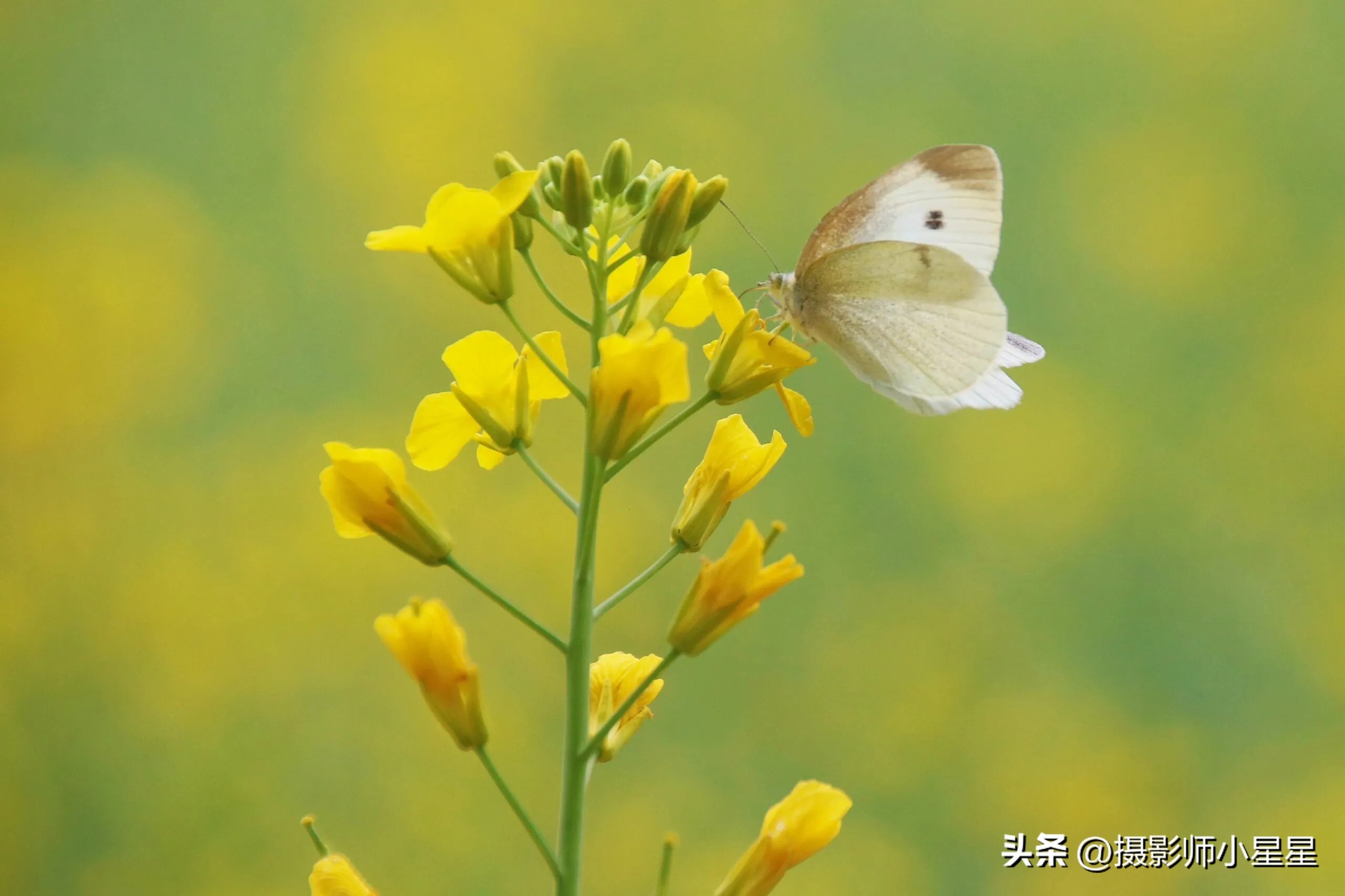 拍摄油菜花我们还可以搭配蜜蜂、蝴蝶等昆虫,能够为照片增添生动和自然的感觉。下面总结了拍摄油菜花搭配昆虫的好处:
