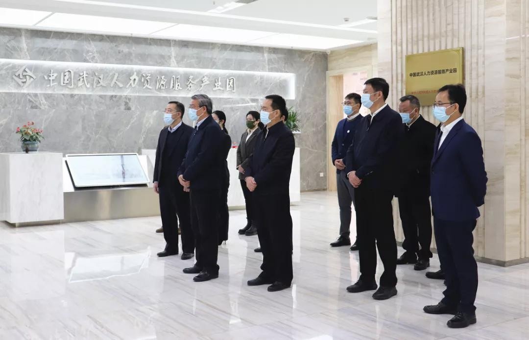 ▲省委常委、省委组织部部长、省委党校(省行政学院)校(院)长李荣灿调研武汉市人才工作,实地查看我区武汉云数字经济总部区和中国武汉人力资源服务产业园