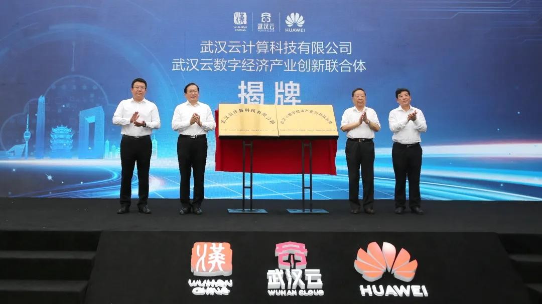 ▲省委副书记、省长王忠林,中国科学院院士、中国工程院院士李德仁,副省长曹广晶,华为公司高级副总裁、中国区总裁鲁勇共同为武汉云计算科技有限公司、武汉云数字经济产业创新联合体揭牌