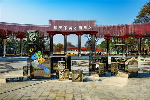 以“人才 常青 共生”为主题,建设武汉市首个人才主题公园——常青人才公园,布局一芯(创“芯”广场)两带(产才融合带、人才服务带)三区(休闲活力区、阳光艺术区、悦享漫游区),打造20.6万平方米展示人才、服务人才、激励人才的永久阵地,变生态福利为人才引力。