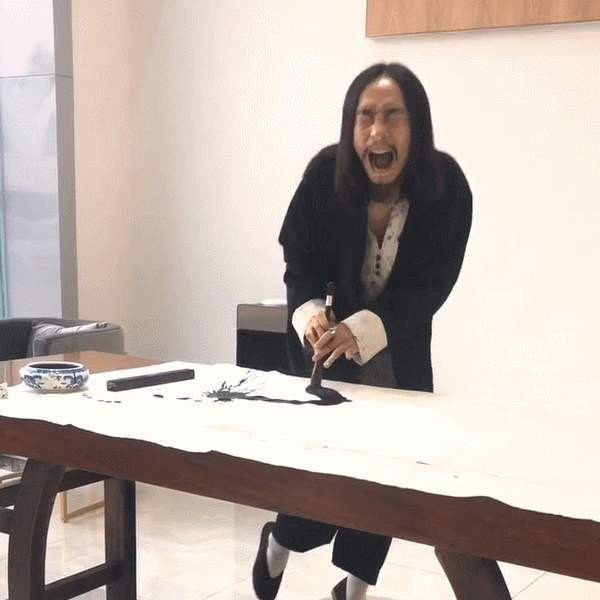 特别他用夸张的表演,把射墨和癫狂吼书呈现的极其丑,丑得连书法界的大师们都闭嘴了!